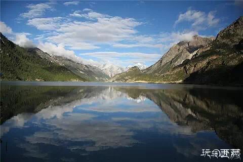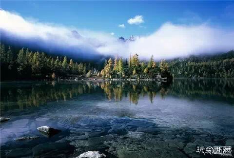 此处景色与西藏其他地区迥然不同,一派森林云海风光。蓝天白云、冰川衬森林、碧湖映雪山、风景绝伦。
