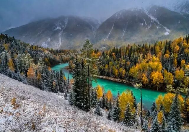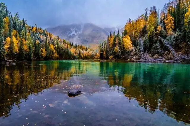 喀纳斯既有北国风光之雄浑,又有南国山水之娇秀,不同的植物群落色彩层次分明,每年9月尤是,金黄、殷红、墨绿各呈异彩,随着天气的变化每天都更换着不同的色调。