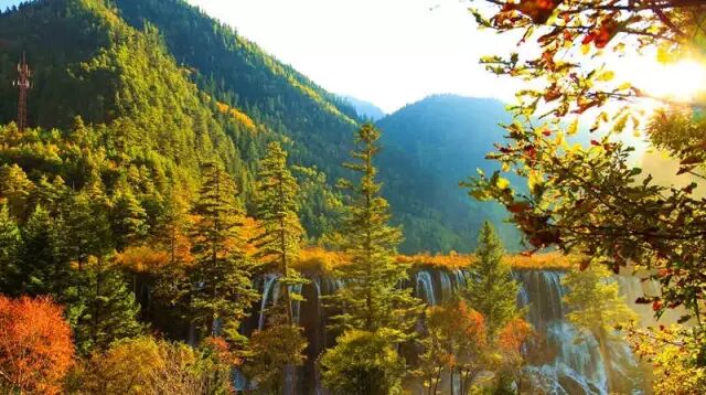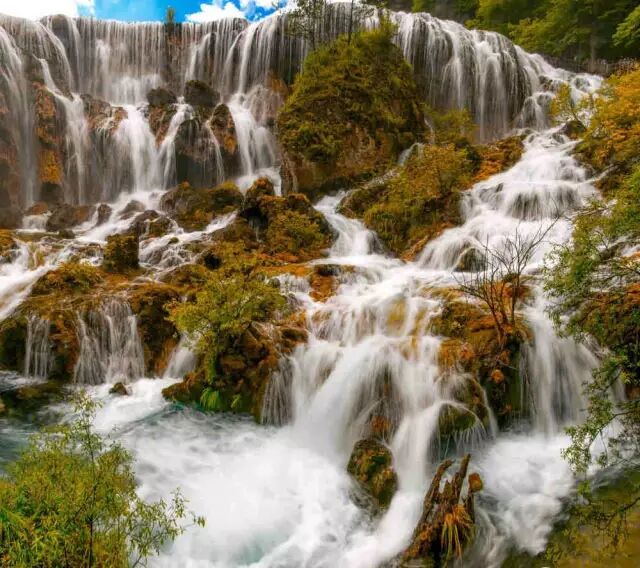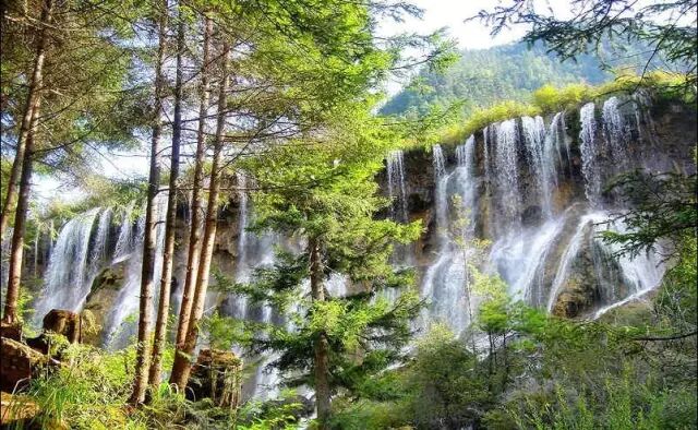 诺日朗瀑布位于九寨沟内三条沟的交汇处,海拔2365米,瀑宽270米,高24.5米,是中国大型钙化瀑布之一,也是中国最宽的瀑布。