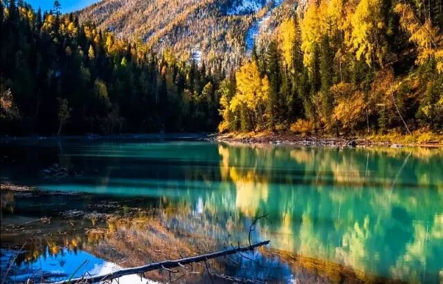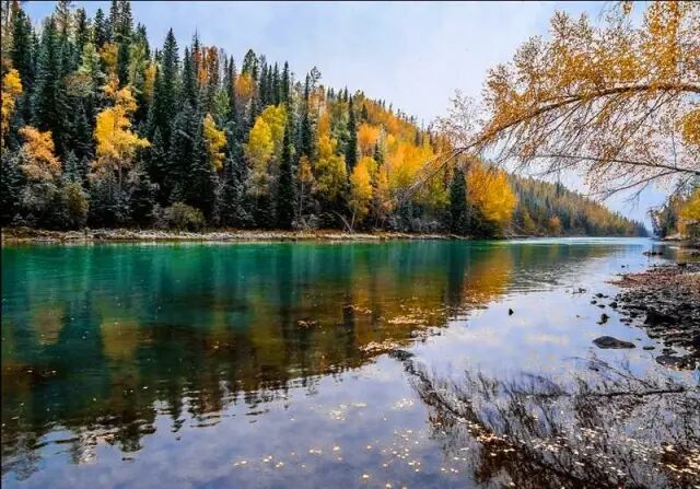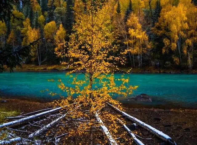 最先给喀纳斯涂抹上油彩的,是欧洲山杨当最早一场寒霜悄然落在喀纳斯的山间,欧洲山杨便害羞一般地为它涂抹上了淡淡的红晕。