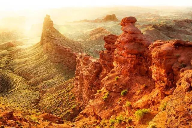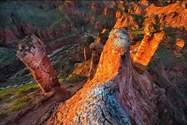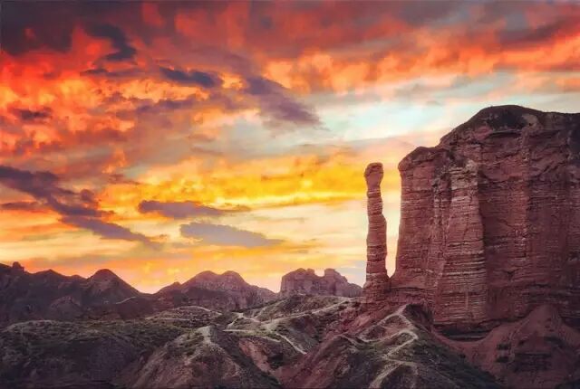 丹霞是指红色砂砾岩经长期风化剥离和流水侵蚀,形成的孤立的山峰和陡峭的奇岩怪石。这里的丹霞地貌发育于距今约200万年的前侏罗纪至第三纪。