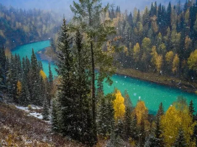 第一场秋雨开始的时候,神山阿尼古拉上便开始飘起了雪花,到了9月左右,圣洁的虎头山便要开始层层包裹雪白的衣衫,为来年的春夏积攒滋养的泉水。