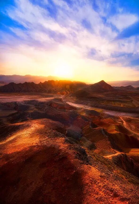 张掖丹霞地貌位于甘肃省河西走廊中段的张掖市,古为河西四郡之一张掖郡,取"断匈奴之臂,张中国之掖(腋)"之意。