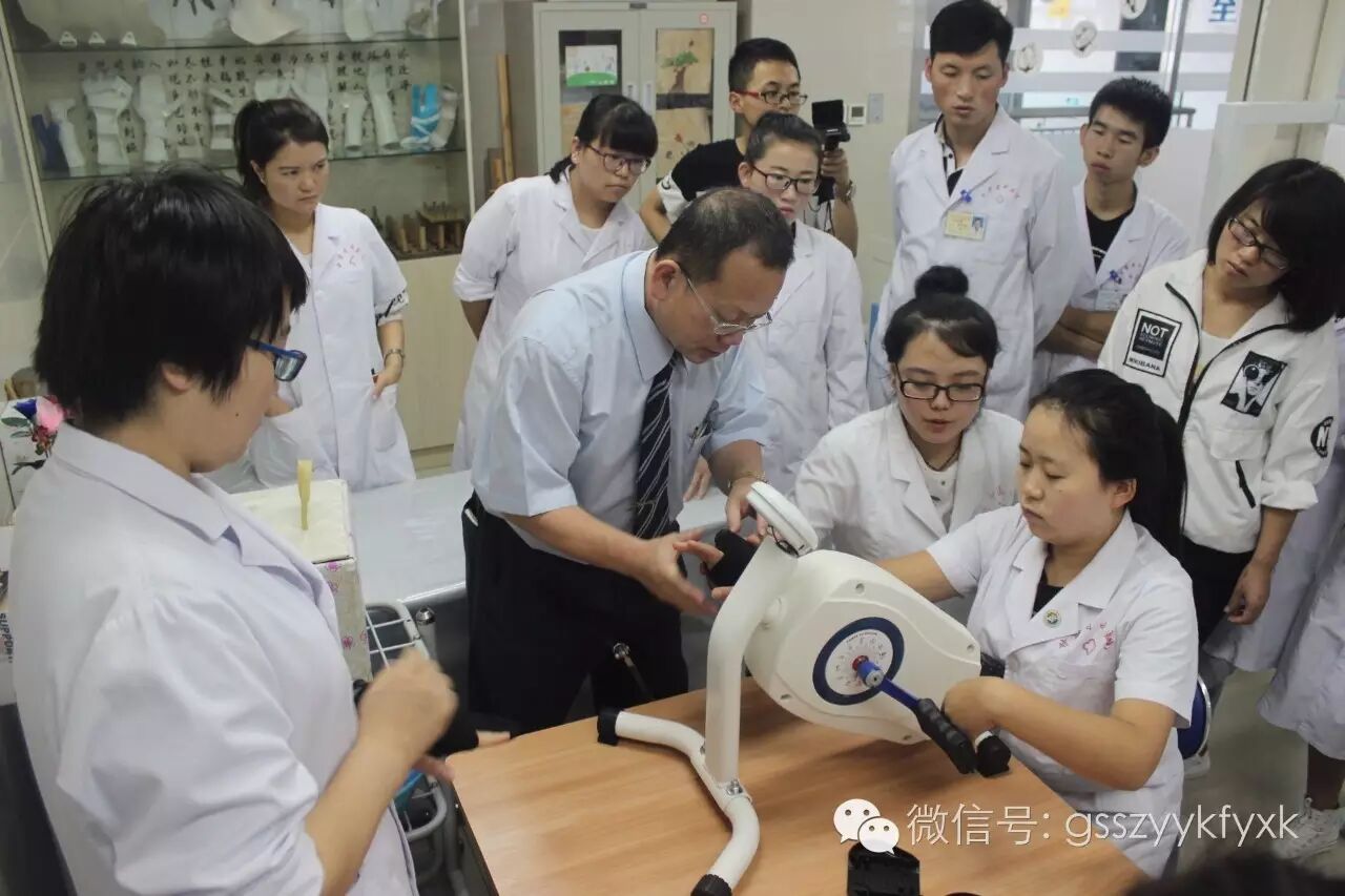 2016年8月28日上午8时许,林志峰教授在甘肃省中医院A座五楼康复医学科就医疗设备、治疗手法、团队合作等展开了讲解。