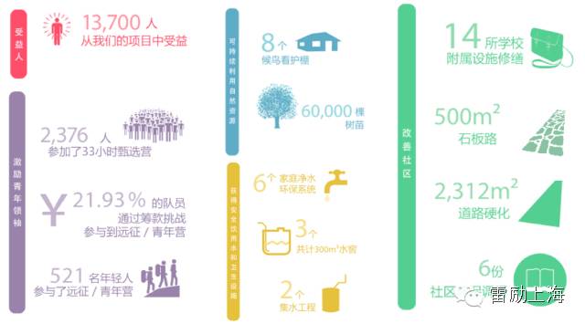 Have you ever thought about?I dedicate myself to making a difference!◆ 雷励中国致力于青少年及可持续发展公益机构,秉持“探索、勇气、正直、魄力”的理念,通过“服务中成长(Serve and Achieve)”的方式,激励青少年跳出自己的舒适圈,服务社区及保护环境,共建一个可持续发展的未来。自2008年雷励中国成立以来,已有数千名志愿者积极参与到雷励中国的项目中来,8年来,我们完成了甘肃省60,000棵沙棘树苗的培育;江西省鄱阳湖候鸟看护棚的搭建;贵州两所希望小学的搭建、17所希望小修的附属设施的修葺,帮助当地铺设道路3052㎡并修建多个水窖、家庭环保净水系统等。◆ 雷励远征是由18-24 周岁队员组成多元化小组,在25周岁以上具专业技能的全职及义工支持下,在偏远地区开展为期5-10周的实地远征,完成环保、社区建设及野外探索项目。雷励远征被数以千计的参与者评价为“一生必须要有的一次经历”。