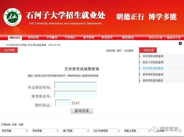 石河子大学2017年艺术类考试成绩查询:http://zjc.shzu.edu.cn/list.asp?typeid=1&sortid=67