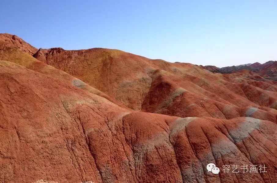 丹霞的美,是任何一个绘画大师都难以透彻描绘的。点、线、面、色块的完美结合,构成了一幅幅动人的画面,那橘黄色的流动的纹理,就像大地的肌肤,在起伏和跃动中,褶皱形成的阴影像山水画的各种技法展示,纵横交错的石林像宫殿和城堡一样神秘而摄人魂魄,冲击着你的视觉,使你不由惊讶。