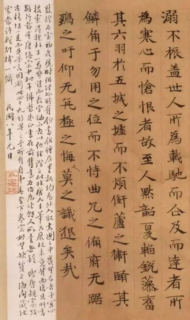 此卷《抱朴子残卷》最早发现于敦煌藏经洞,后来流入日本。其中此篇《畅玄》残卷原卷系孔宪廷(1873-1928)在甘肃省任职期间大力购求敦煌遗书所得。民国八年(1919年),孔宪廷将卷首残存的《畅玄》篇49行割裂赠与许际唐先生。后来许氏将其转售给日本的中村不折,后著录于《中村不折旧藏禹域墨书集成》。