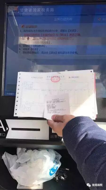 2017年2月23日下午,陇南市首台一体化自助办税终端在武都区国税局办税服务厅正式上线运行,标志着陇南国税自助办税业务提档升级,向税收现代化迈出了实质性的一大步。2月24日上午11时,一体化自助领票服务终端为甘肃省航天信息公司驻陇南办事处张文杰成功领出了第一份00636001号增值税普通发票。拿着油墨芳香的发票,张文杰一个劲的为自助领票终端点赞:以前领用发票要叫号排队,耗费好多时间,现在有了这个系统,不仅24小时自助领票,还可根据自己的时间随时领票,“急用发票一时领不到”的现象将成为历史,国税局真正给我们吃了定心丸,我们再也不用领用发票发愁了,真正解决了企业的后顾之忧!感谢税务局便捷高效的服务,我们一定会及时缴纳税款,做一名诚信纳税的纳税人。