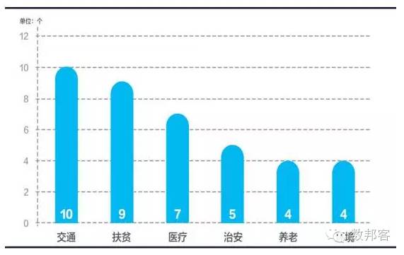 交通拥堵、看病难、食品安全、教育资源不均衡等民生问题,已成城市发展瓶颈。政府从不同侧面切入,利用大数据手段解决民生问题。其中涉及交通方面的大数据项目居多,其次为大数据扶贫项目。