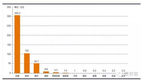 大数据应用在行业中显得最为广泛和活跃,2016年上半年,医疗大数据行业发生投融资事件为18起,交通大数据行业投融资金额为305.4亿元。