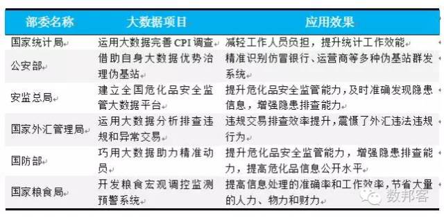 各部委建设的大数据项目通常都与各自部门职能相关,减少了人力、财力的浪费,大大提高了办公效率。