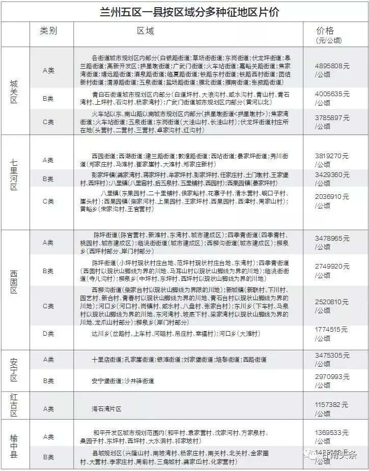 甘肃省政府近日印发更新后的《甘肃省征地补偿区片综合地价》及《甘肃省征地补偿统一年产值标准》,自即日起遵照执行,2012年颁布的补偿标准同时废止。省政府将根据全省经济社会发展情况,适时进行修订。新的征地补偿标准由土地补偿费和安置补助费两部分构成,不包括青苗和地上附着物补偿费。经依法批准占用基本农田的按统一年产值的30倍补偿。