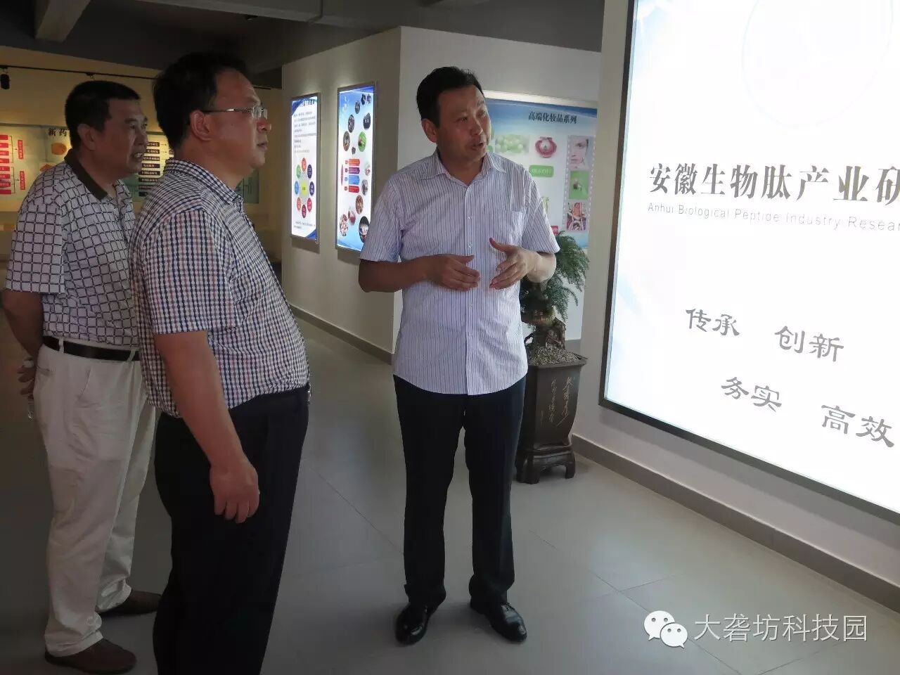 8月11日上午,甘肃省兰州市安宁区科技局局长刘应龙一行来到大砻坊科技文化园调研,镜湖区科技局副局长陈鑫宇陪同参观。安徽砻坊科技发展有限公司副总经理彭丽俊向来访领导详细介绍了大砻坊科技文化园的发展和运行情况。