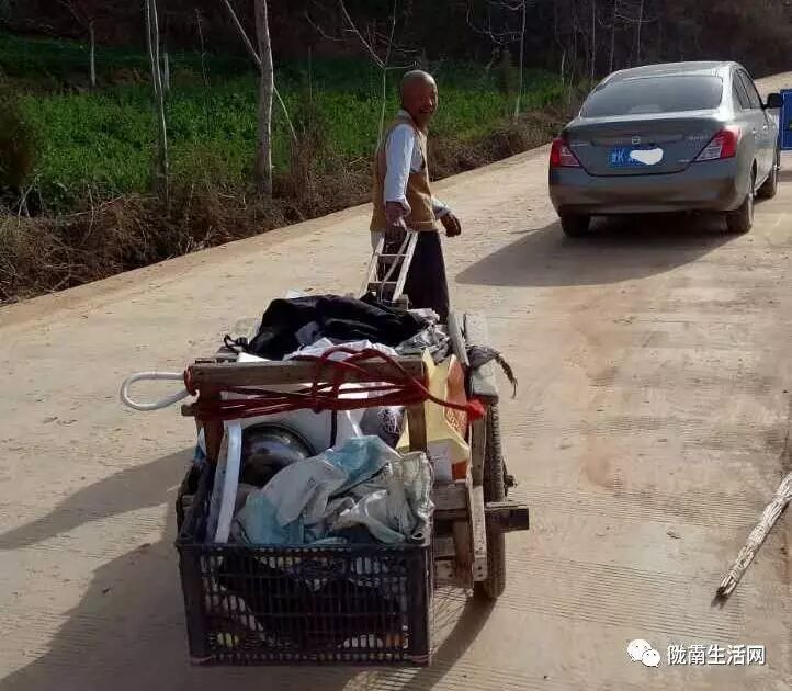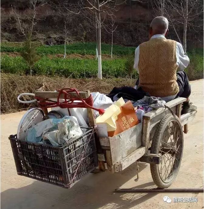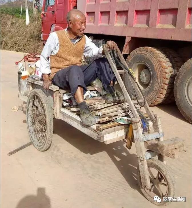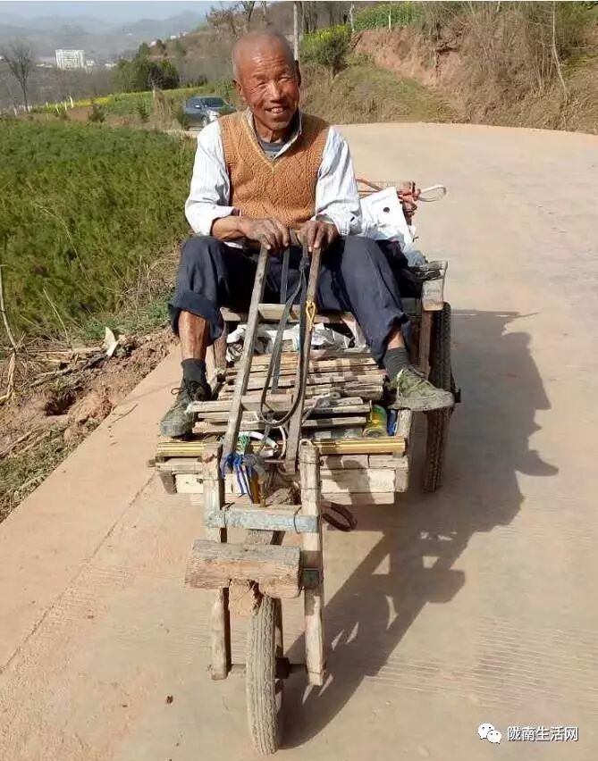昨日,在干农活时无意间发现一徽县老大爷纯手工打造的三轮车,不烧油,不加汽。四处打听才得知,老大爷是徽县城关镇田坝村农民,今年70多岁高龄,他自造的木质三轮车,进城磨面,很方便,下坡平路坐上自动跑,刹车方便,又灵话,上坡拉着健身体,快乐生活好幸福。