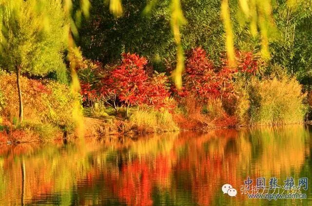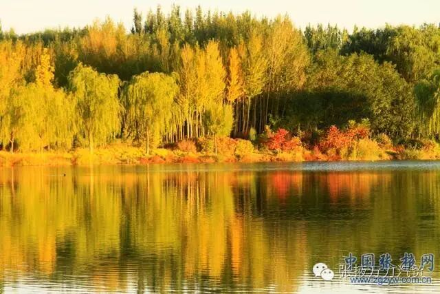 10月8日,甘肃张掖滨河新区如画的秋色。当日是农历二十四节气的寒露,甘肃张掖滨河新区绿化带中的树叶已经开始变黄、变红,黄叶、红叶倒映在湖面,犹如美丽的画卷。本网特约摄影师 陈礼/摄