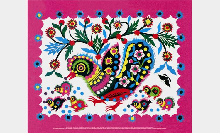 多年以后,看到剪花娘子的《母鸡带小鸡》,五彩缤纷的画面里,一只漂亮的母亲带着一群小鸡在觅食。小鸡睁着滴遛遛的眼睛,充满着好奇,母鸡却还低头在看它们,满是关心与爱。让人想起了小时候观察过的鸡,更想起了那时候,奶奶妈妈为家人剪吉祥的剪纸,不也是一样的爱与守护吗?