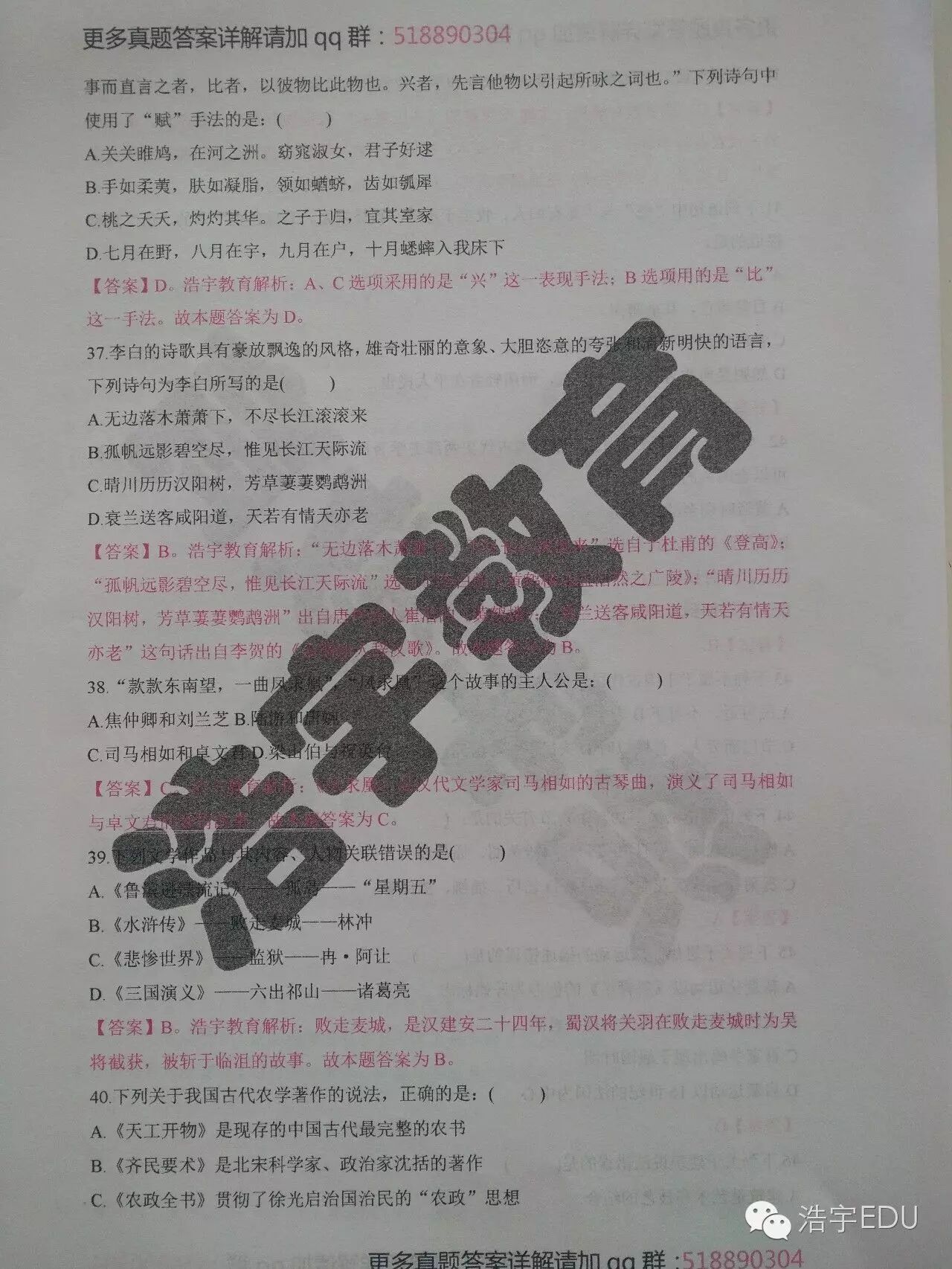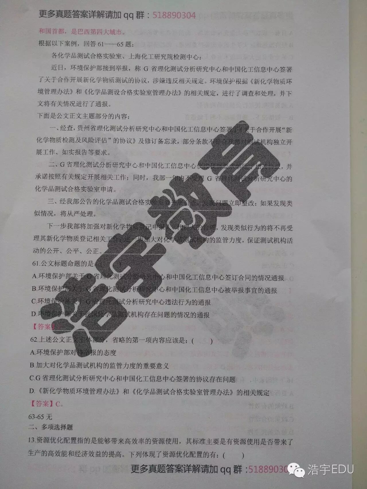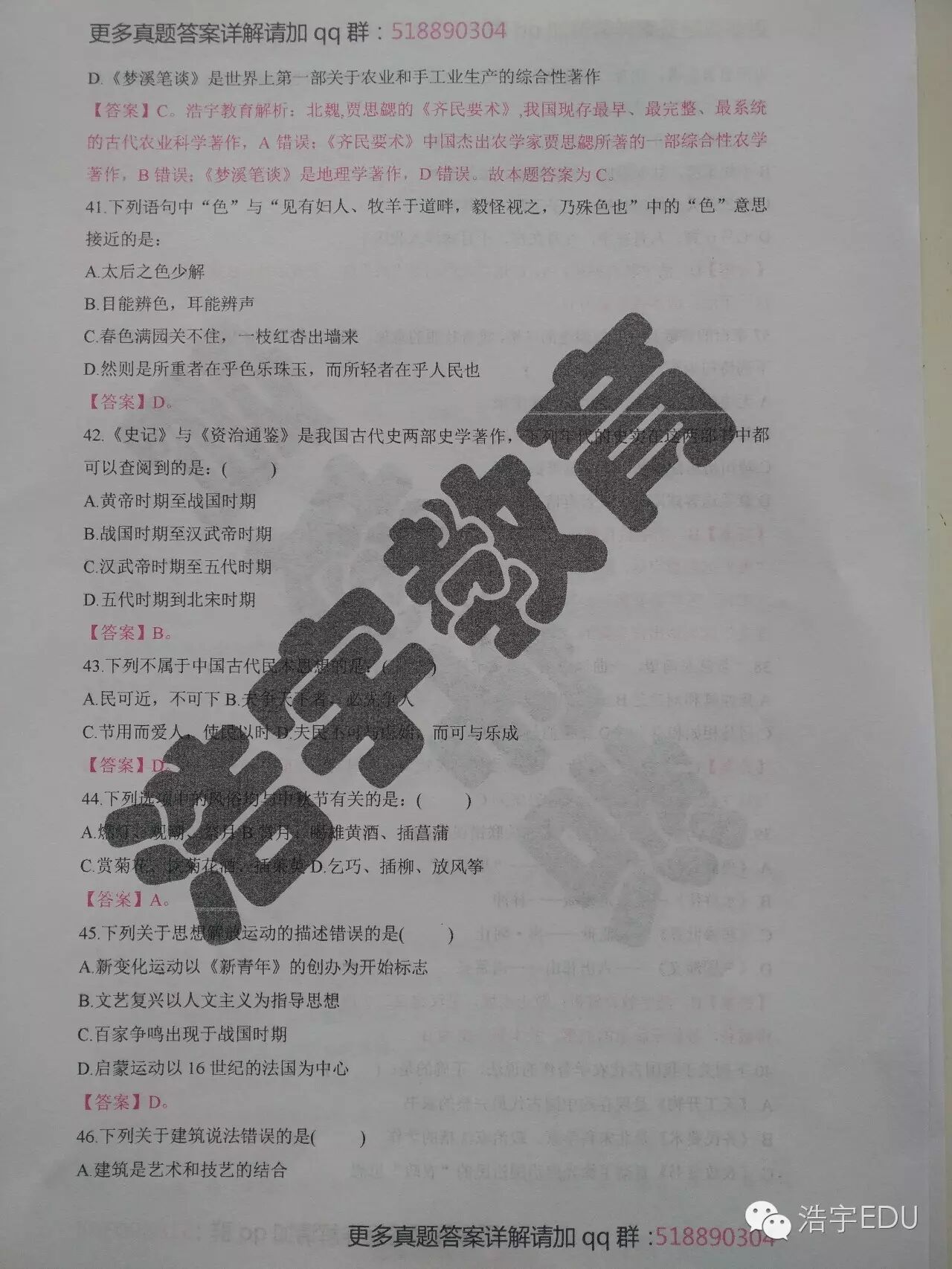 整套真题答案详解解析请加qq群: