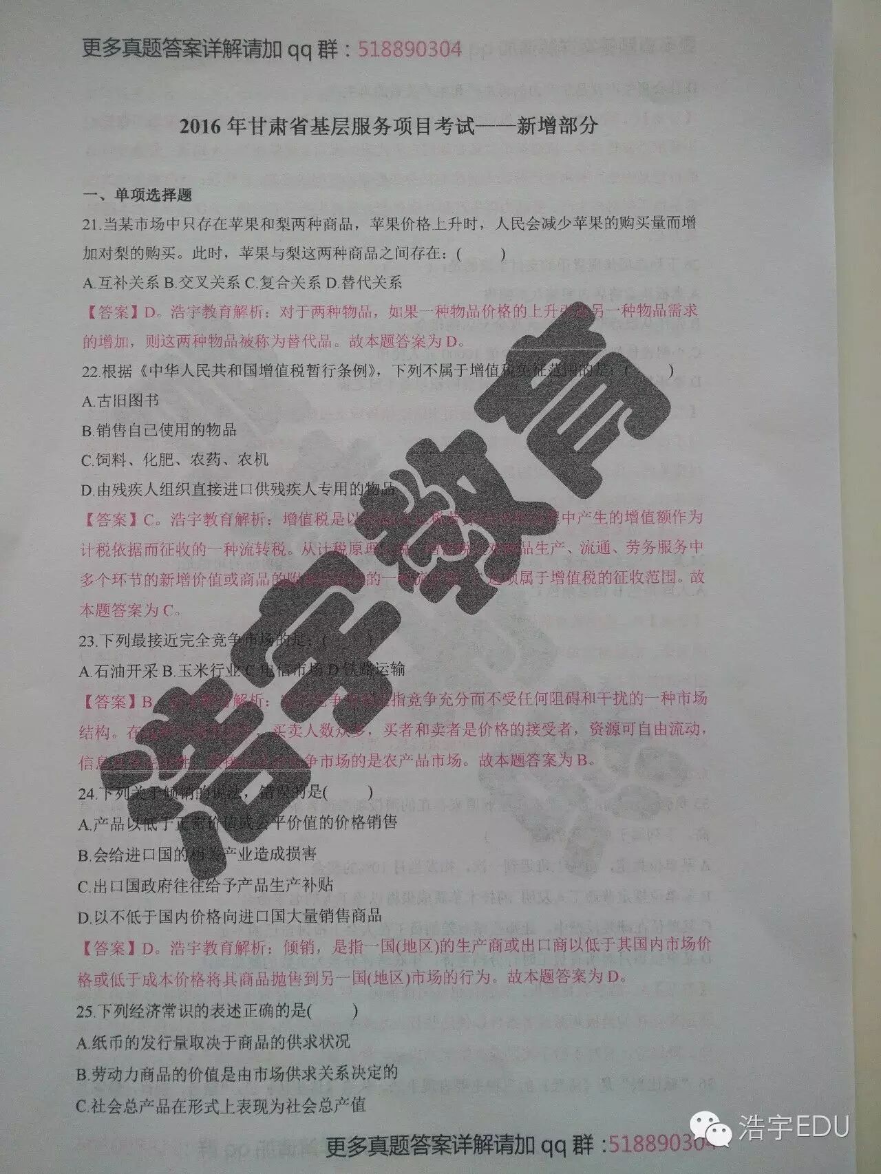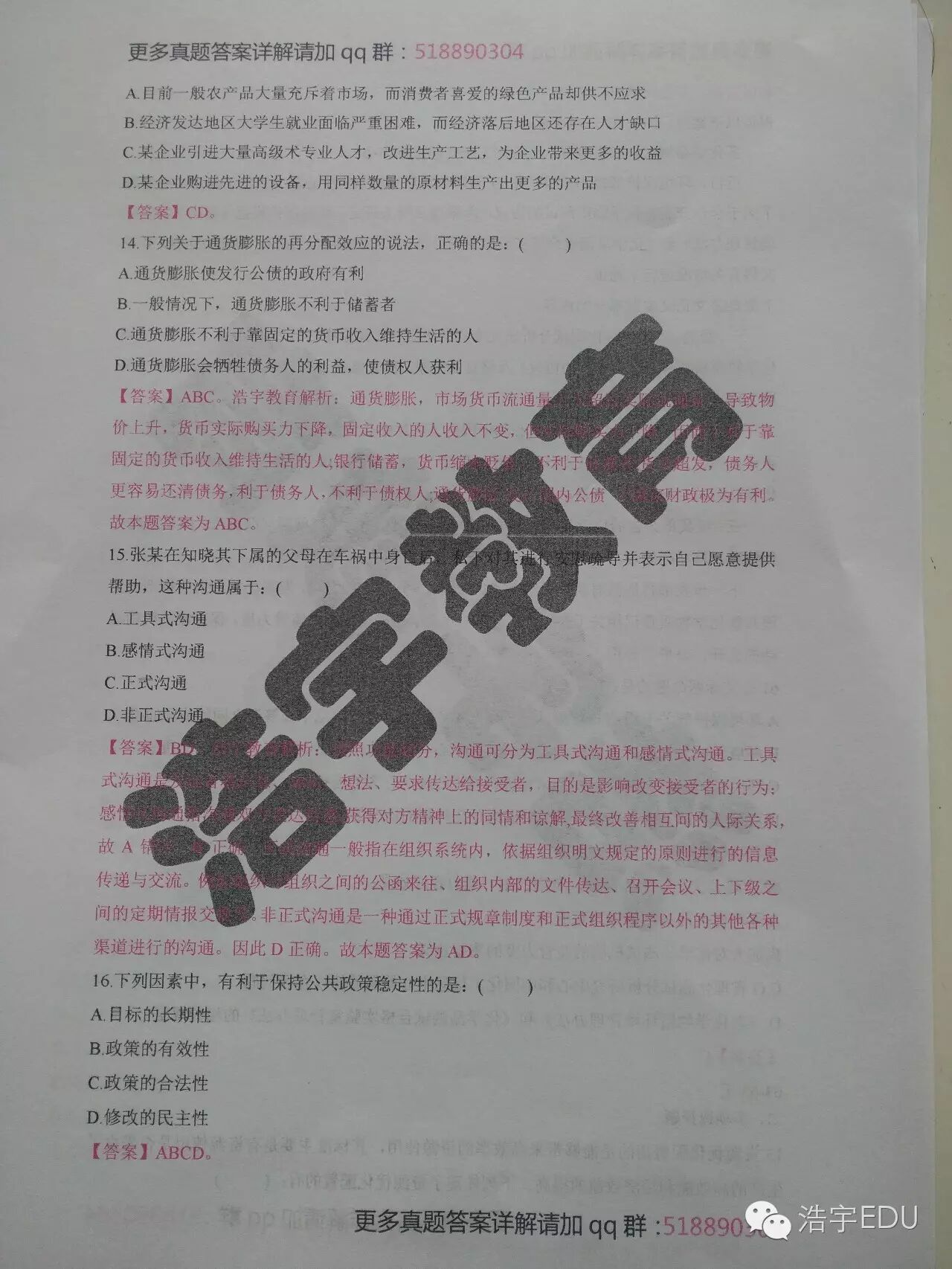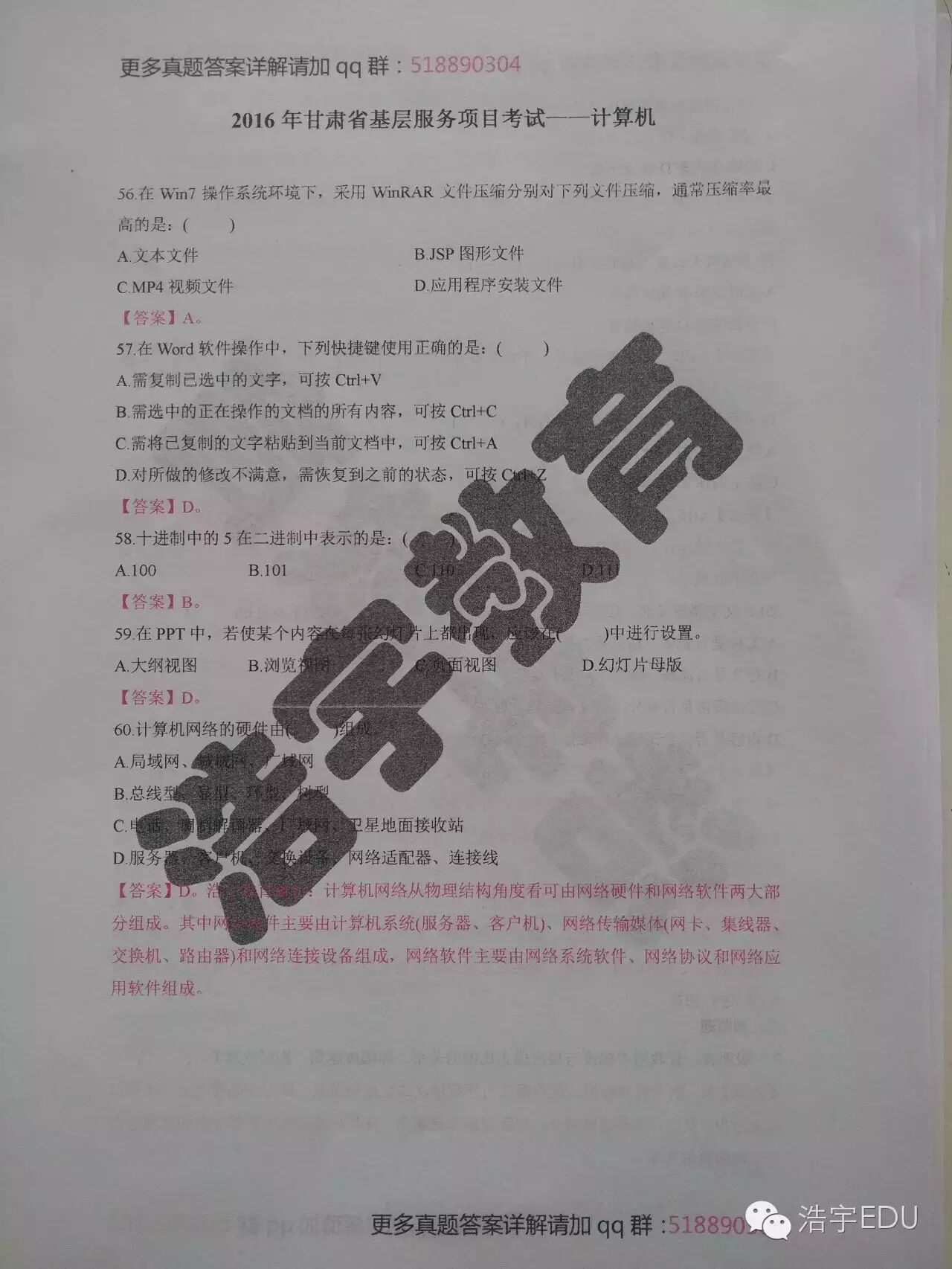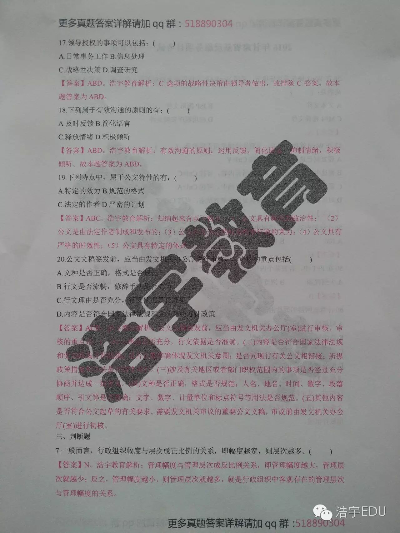 整套真题答案详解解析请加qq群: