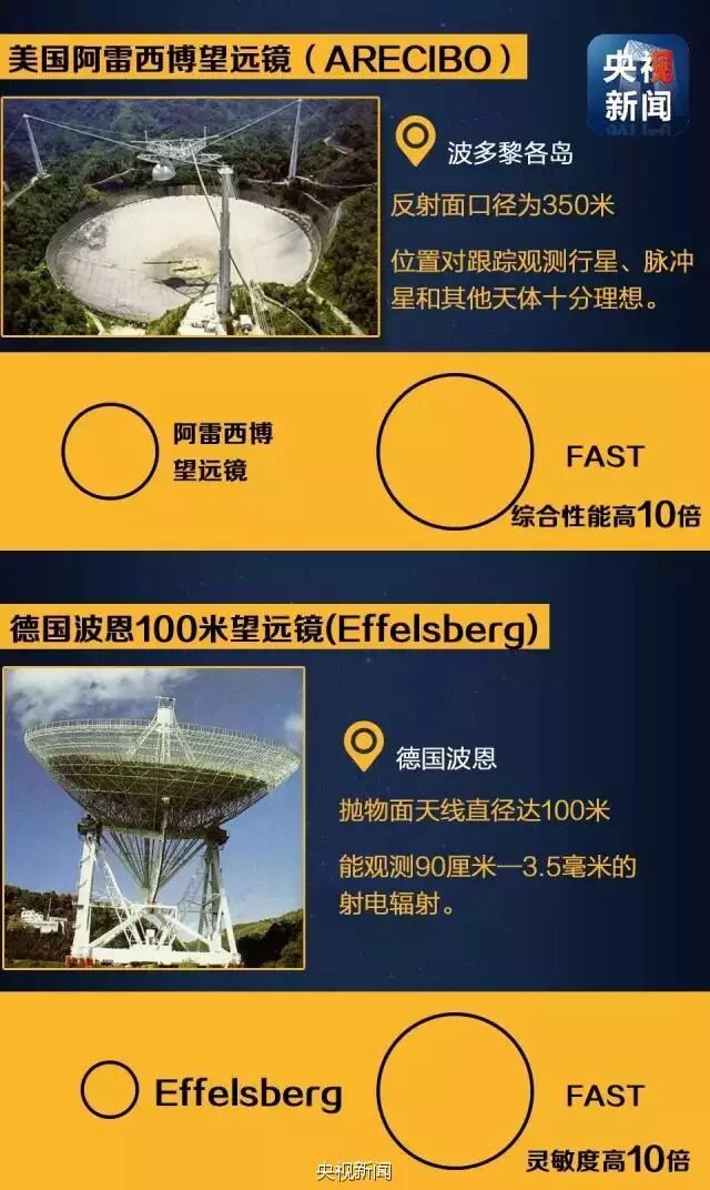 在FAST建成以前,世上已存的最大射电望远镜有两个:一个是号称“地面最大的机器”的德国波恩100米口径望远镜,一个是被评为人类20世纪十大工程之首的美国阿雷西博望远镜,其反射面口径为350米。