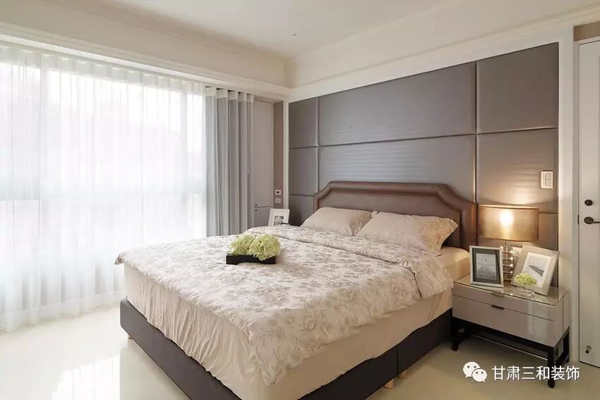 主卧选择落地窗设计,地砖和背景墙颜色显得端庄大气。