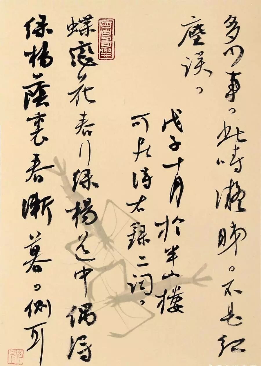 在各种书体当中,我用功最勤的是楷行草。我写楷书主要是追求一种安详静穆、开张宏逸的感觉,因此,在创作中我主要取钟王一路宽拙醇厚之气息,玉版十三行舒展潇洒之风度,褚遂良温婉灵动之结构,虞世南外柔内刚珠圆玉润之用笔,从而使整个作品呈现出一种遒劲洒脱、风神简远之特征。在行书方面,我一直以来喜欢魏晋时期那种气韵生动、翰逸神飞、不激不厉而风规自远的风格。因此,我平时的创作以二王及王荟、王志、王慈等为宗,以颜真卿浑厚朴茂之美,力争使作品具有一种清隽健朗、萧散疏阔的气象。大草是我的最爱,因为它具有其他书体所不具备的抒情性、酣畅感与浪漫气质。当然,越是狂放的东西越需要严谨。草书在所有书体中难度也是最大的,不仅要解决草法是否正确的问题,还要随时解决快速书写过程中的一些矛盾和问题,要懂得随势生发,因地制宜。我写草书主要取法《大观帖》及二王手札,怀素自叙,旁及历代诸家,力求使作品语言丰富,线条洗练、墨色多变、节奏起伏,从而具备畅达而又蕴藉的格调。