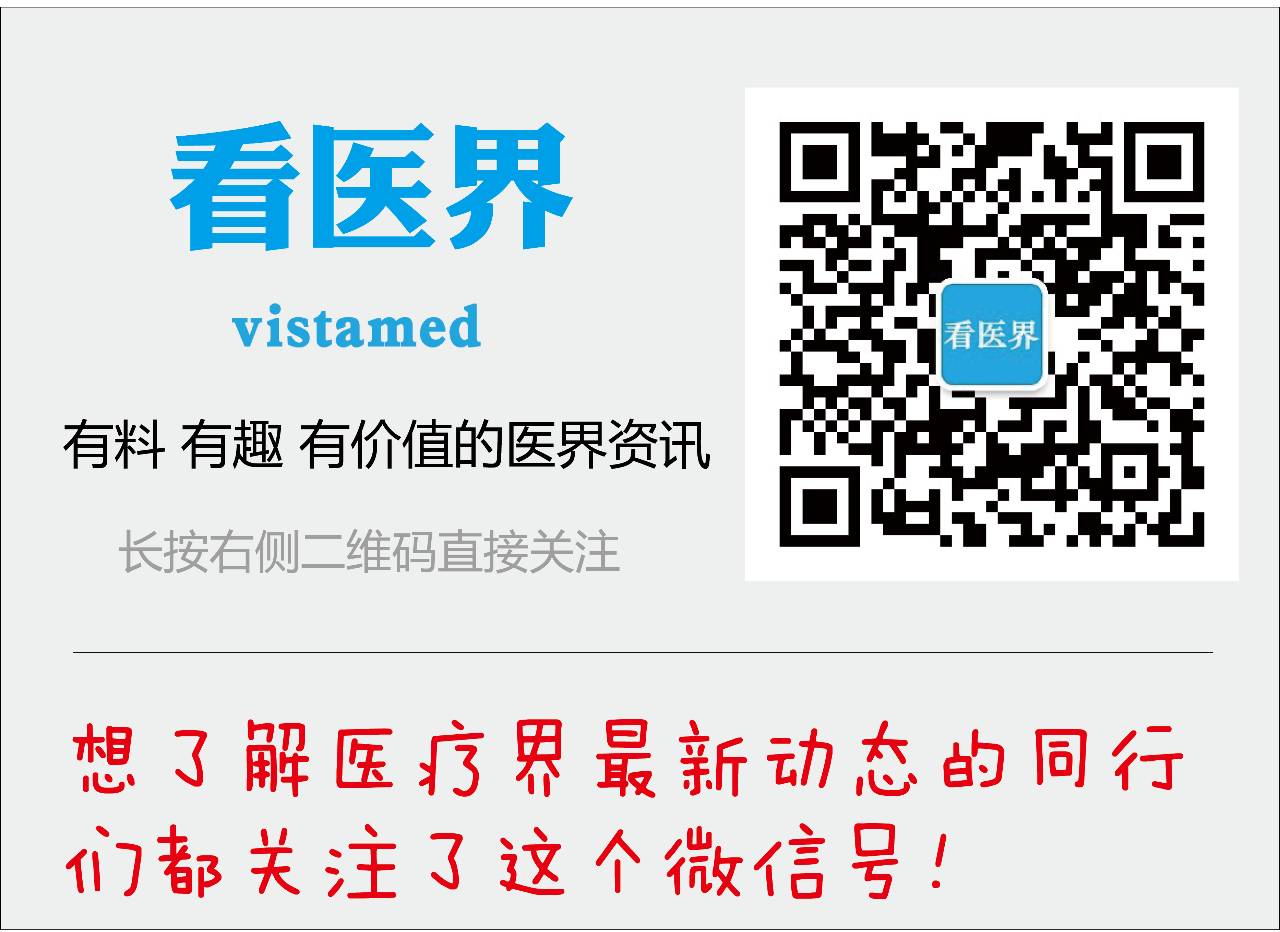 长按下方图片,识别二维码后,即可关注“看医界”微信公众号。每天都很有料哦!(内容或是商务合作请加小编个人微信号:yijie030)