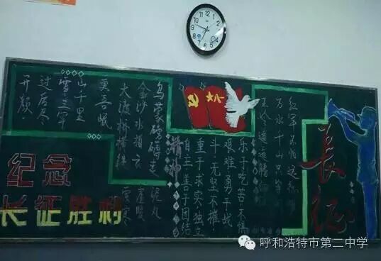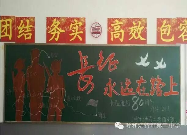 为了纪念红军长征胜利80周年,10月到11月校团委在全校范围内开展了系列纪念活动。在10月31日的国旗下讲话中,我校团委、学生会白照星同学进行了有关长征精神的国旗下演讲;各团支部组织了以“纪念红军长征胜利80周年”为主题的团组织生活;各班的板报主题突出,画面精致多彩。本次活动,不仅让同学们了解到红军长征的历史知识,更使大家深刻理解了长征精神的内涵与外延,,激发了同学们的爱国热情。