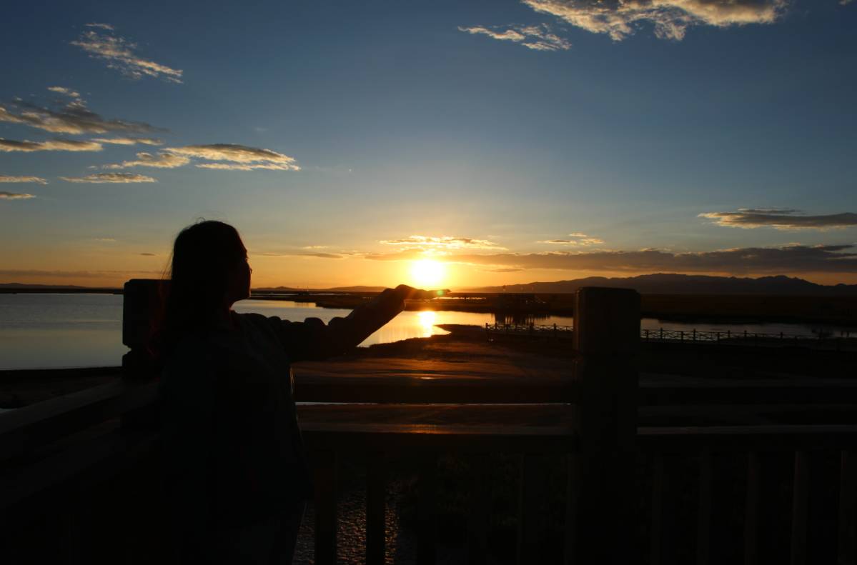 天边夕阳再印上我的脸庞,逆光之下,夕阳西下