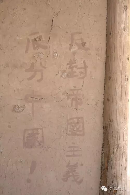 遗址室内红西路军标语墨迹是甘肃、宁夏、青海三省区唯一现存的红西路军标语,是红西路军主张联合抗日、一致对外的历史见证。至今还保存着“大沽”刷写的“人民军队是救国救民的军队!”“中国人不打中国人,联合起来打日本!”“实行停止内战,一致联合抗日!”“一切不愿当亡国奴的人联合起来!!”“回、汉、蒙、番联合抗日!”“建立抗日国防政府!”等内容的标语。