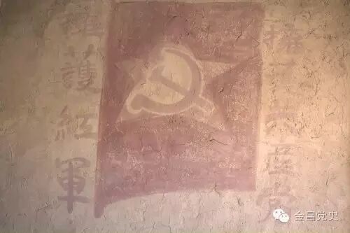 大沽旧址墙壁上挂的红军旗帜