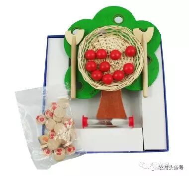 童趣的设计加上具有挑战性的玩法,还可多人游戏或团体竞赛。每人拿1个木叉,当沙漏开始计时,以最快速度用木叉将苹果叉到篮子里,得到赢点最多的队胜利。