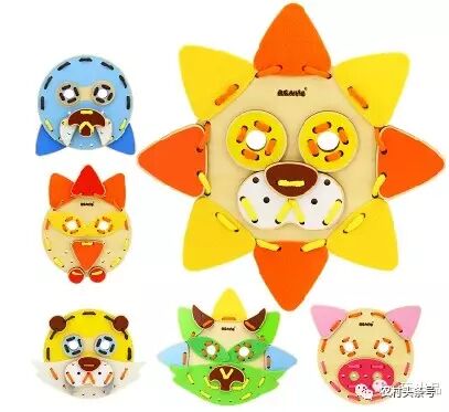 这款百变的DIY穿线拼装玩具含印有各种动物元素的脸谱木质夹板、裁剪成各种形状的毛毡布以及用来固定穿绳面具的穿绳。变换无穷的拼装组合让孩子的想象力有了发挥的空间。