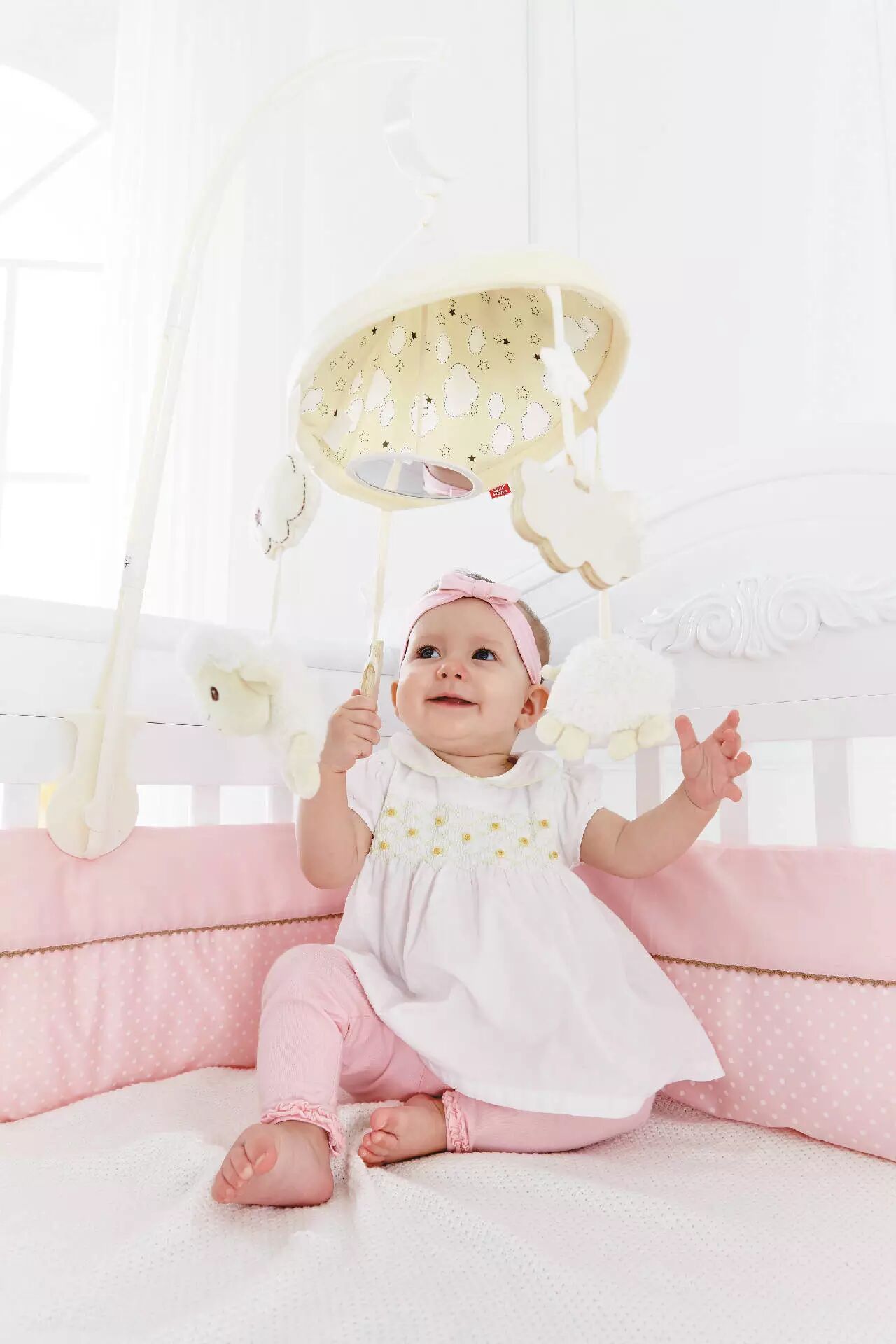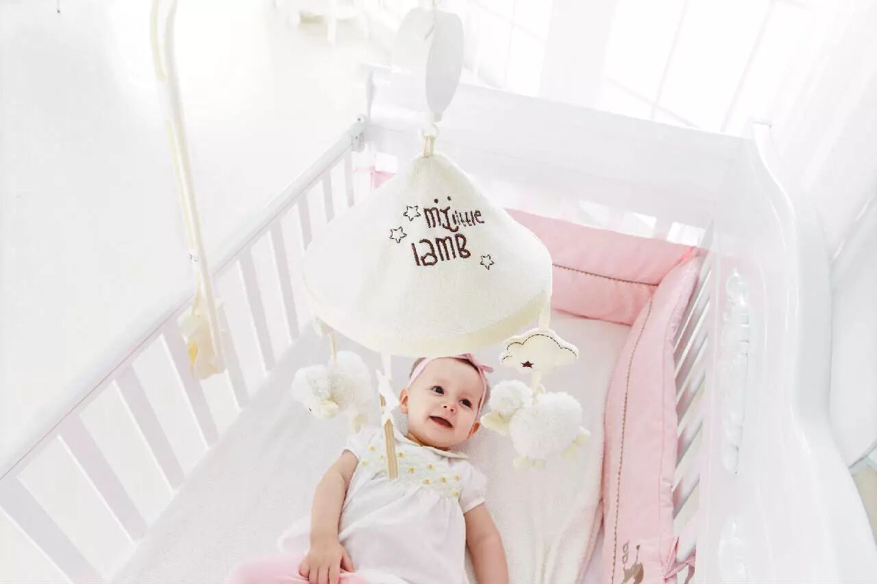 洋羊新生床铃上垂挂了绵羊、星星等毛绒小玩偶哦,吸引宝宝的注意力,让宝宝小手抓握,还会发出声音,从视觉、听觉、触觉刺激宝宝感官全面发育。![]()