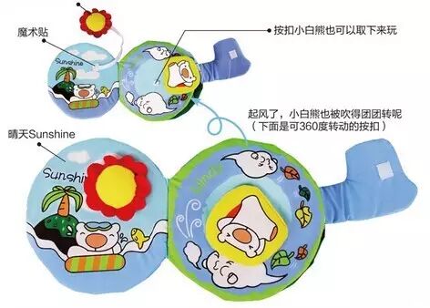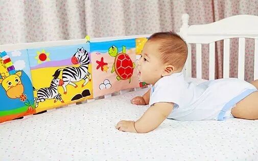 但这个月龄,也就是六七个月内的宝宝,布书给TA更多的就是一种视觉的刺激。还不如挂一个床铃呢,床铃还会动、会有音乐,更多元一些。