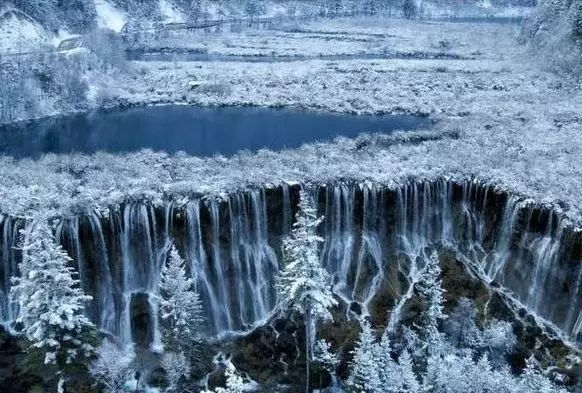隆冬时节,瀑布早从流动状态,转变成固体状态,诺日朗瀑布成了一幅千姿百态的冰瀑画卷。阳光下的诺日瀑布,多姿多彩,景色迷人。