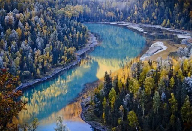 最先给喀纳斯涂抹上油彩的,是欧洲山杨当最早一场寒霜悄然落在喀纳斯的山间,欧洲山杨便害羞一般地为它涂抹上了淡淡的红晕。