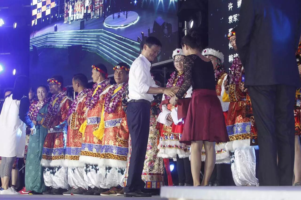 马云连续上台9次颁奖,并同老师们一一握手,甚至特意返场上台同失去双臂而无法握手的江声发老师深情拥抱,还为老师们清唱了半首《蒙古长调》。