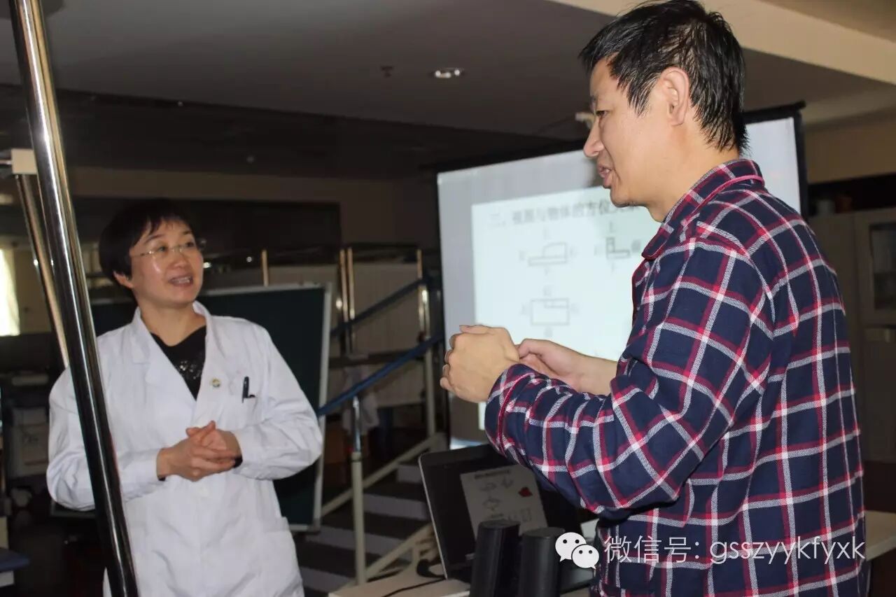 “我最大的愿望就是重返讲坛”这是王教授患病后最大的期望。甘肃省中医院康复医学科以“重建生活为本”,为患者提供各种日常生活活动,娱乐性活动,职业性活动的模拟机会;以挖掘激发大家的潜力,2016年10月20日甘肃省中医院康复医学科以职业治疗为目标组建了一个特殊的课堂,主讲人王建勇,54岁,兰州理工大学机电工程学院工程图教学部教授,脑卒中46天后第一次重返“讲坛”。