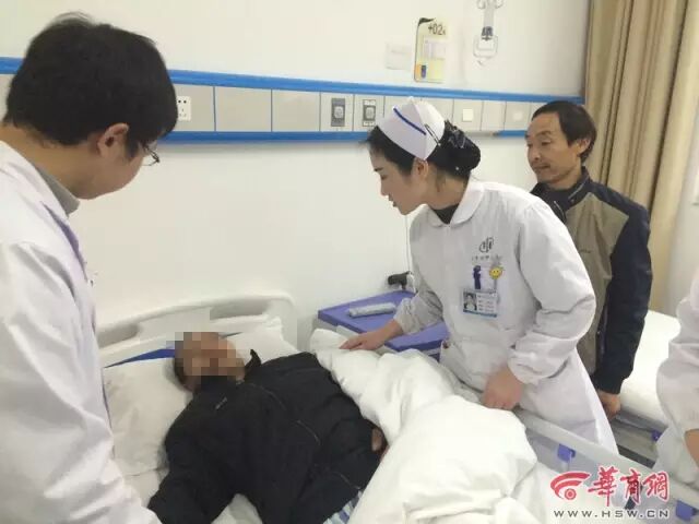 11月15日下午,在汉中市中心医院康复中心病区19床上,躺着刚刚做完治疗回来休息的46岁男子彭某。在医院负责照顾彭某的是他堂兄和一位好心的邻居以及医院的医护人员。目前经过一个多月的治疗,彭某身体恢复的情况比较理想,但部分机能仍然较差。