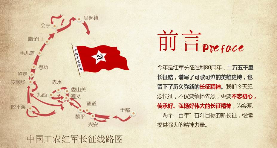 今年是红军长征胜利80周年。为了缅怀革命先辈的丰功伟绩,弘扬长征精神,我校决定开展“永恒的旗帜-纪念长征胜利80周年”展览活动,欢迎同学们参观学习!