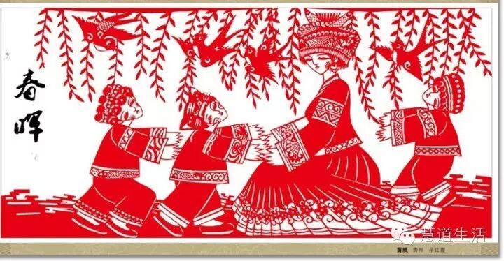 而剪纸艺术发展到今天,则成了节日里不可或缺的元素。每逢过节或新婚喜庆,人们习惯将美丽鲜艳的剪纸贴在家中窗户、墙壁、门和灯笼上,节日的气氛也因此被烘托得更加热烈。