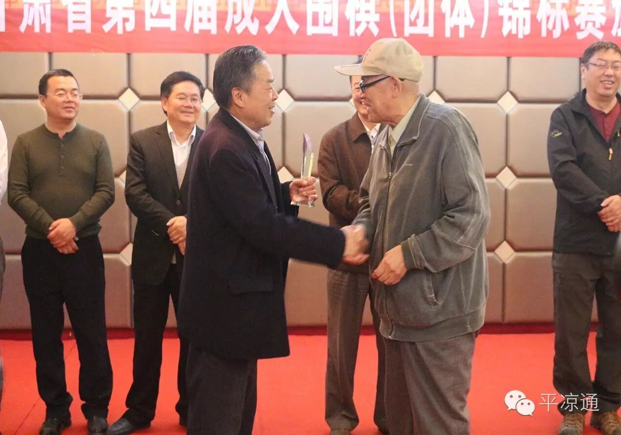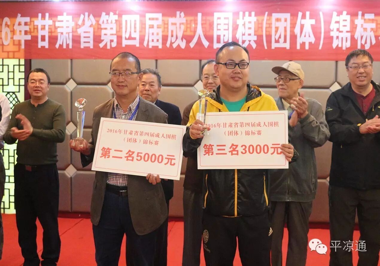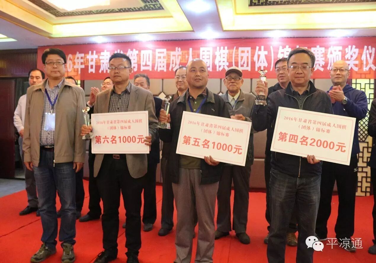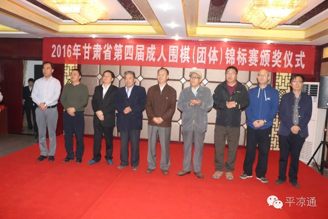 出席本次比赛颁奖仪式的领导有:甘肃省文联副主席、省围棋协会顾问孙周秦先生;原甘肃省围协副主席柯大智先生;甘肃省围棋协会副主席牛之泓先生,徐元先生;;;平凉市建设局副局长、市围棋协会副主席朱国勇先生;平凉市体育中心主任冯绍龄先生;陇东棋院院长葛效武先生。