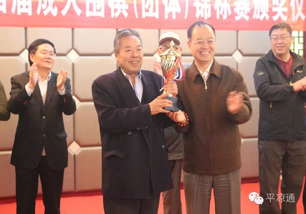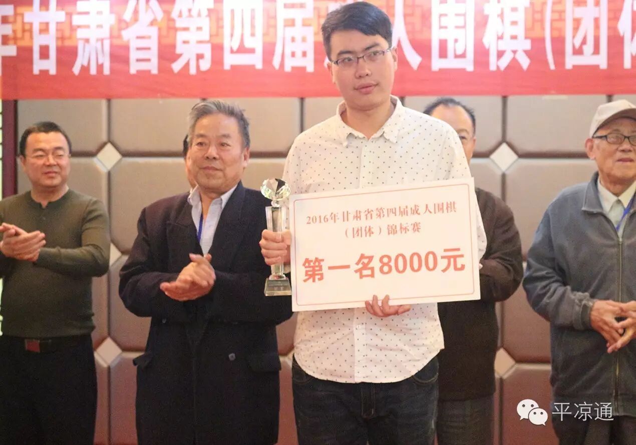 平凉市围棋协会副主席、陇东棋院院长葛效武先生为获得本次比赛的团体第一名代表队颁奖;