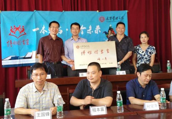 接下来,北大光华滕飞副书记、李琦教授、雷明教授为学校校长授博雅图书室牌匾,光华小学校长在感谢辞中表示:“读书对人的成长影响是巨大的,而一个民族的精神修养很大程度上取决于全民族的阅读水平。身处农村学校,课外书在孩子眼中都是奢侈品,感谢北大光华管理学院为孩子们提供诸多书籍,提供接受更深教育的机会。高尔基曾说,书籍是人类进步的阶梯,对坎坷曲折的人生道路而言,书籍也是最好的安抚剂。”校长还承诺会好好利用这批图书,营造一个良好的读书环境,让学生从书中获益。