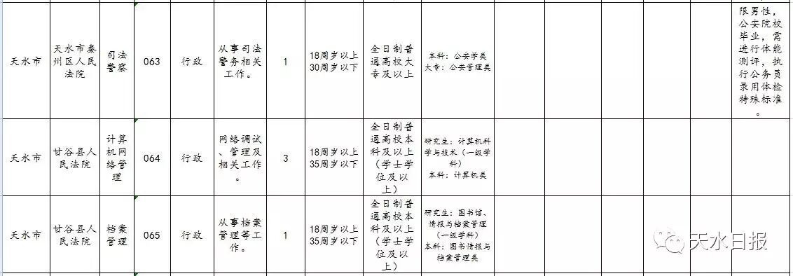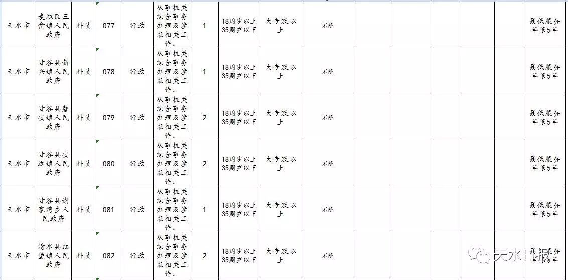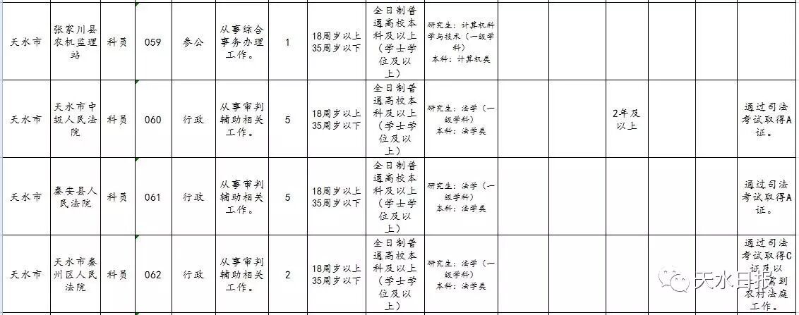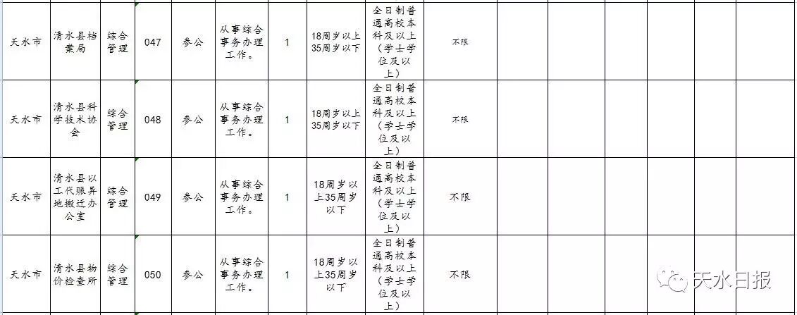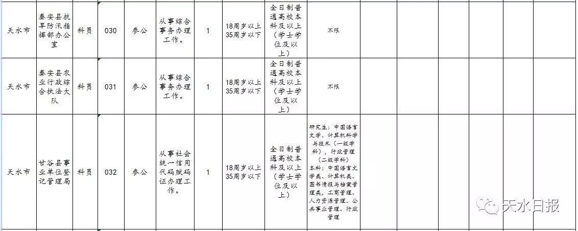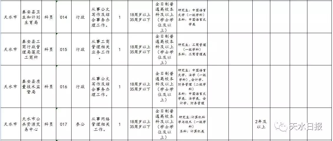 天水市2017年考试录用
