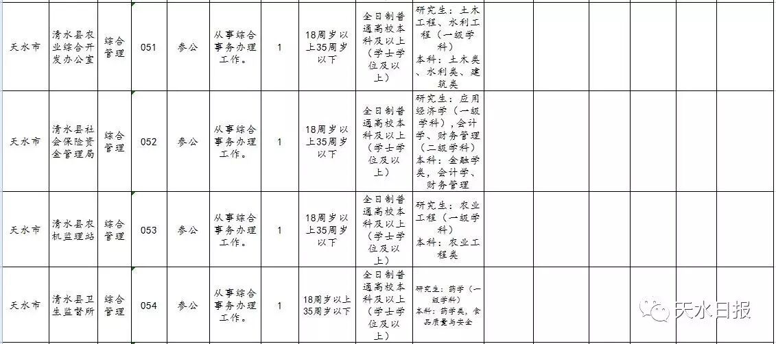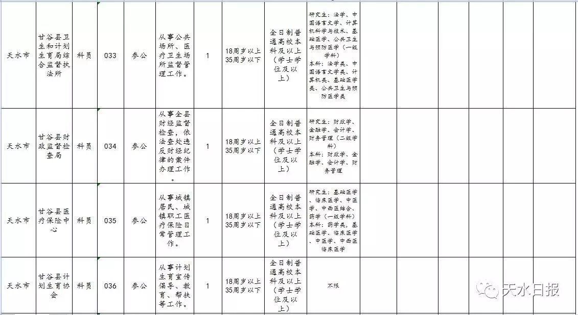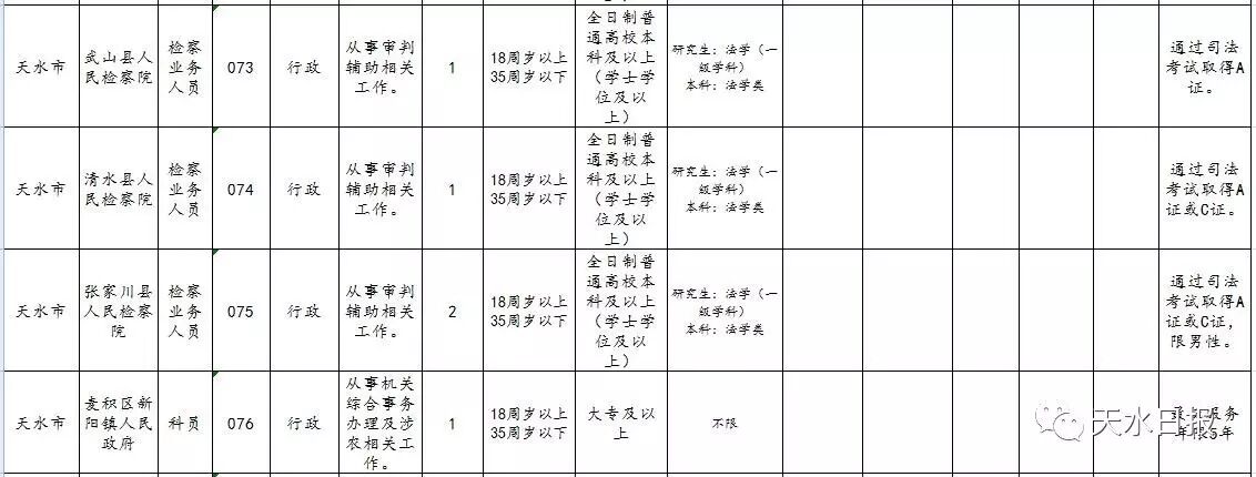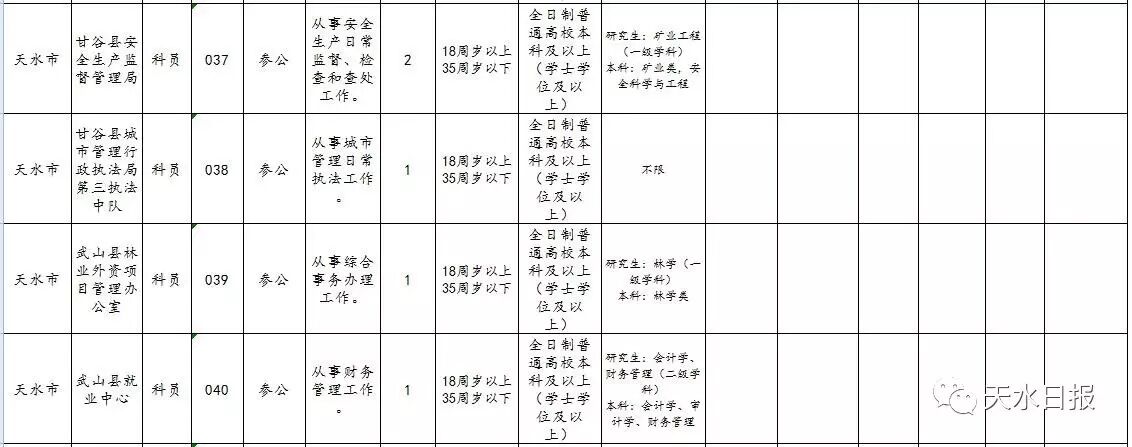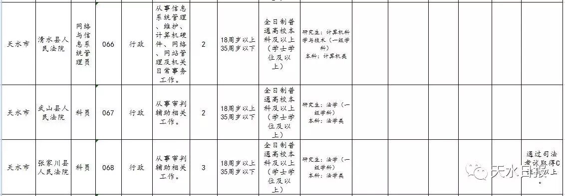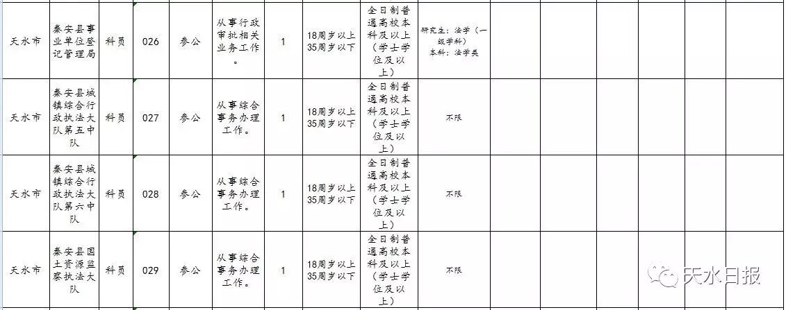 天水市2017年考试录用