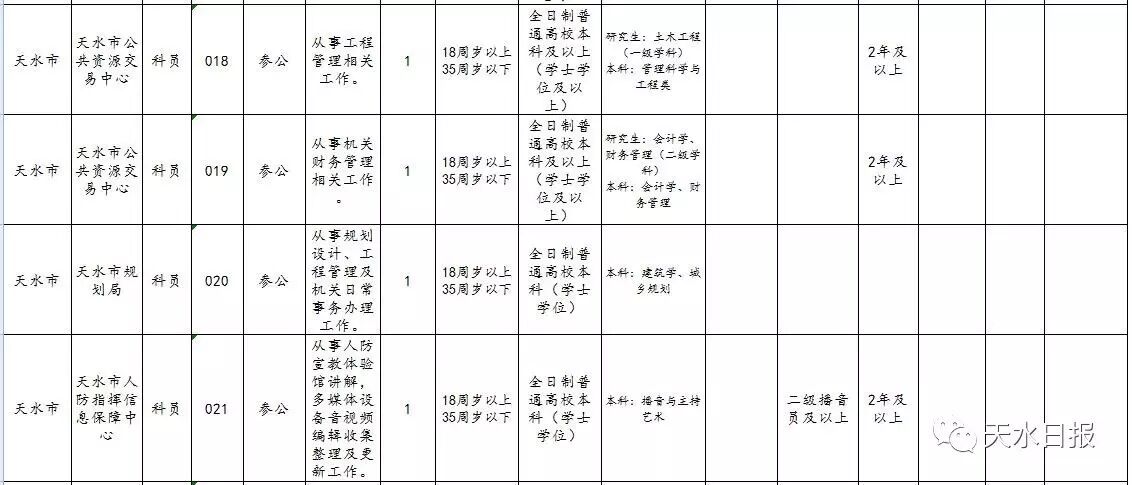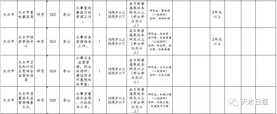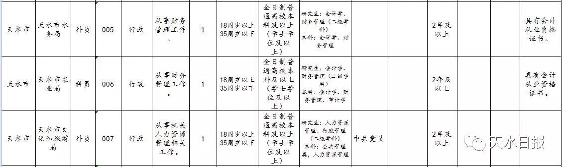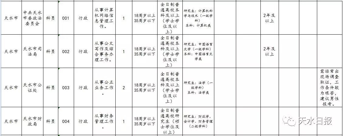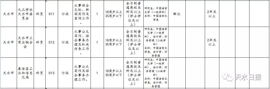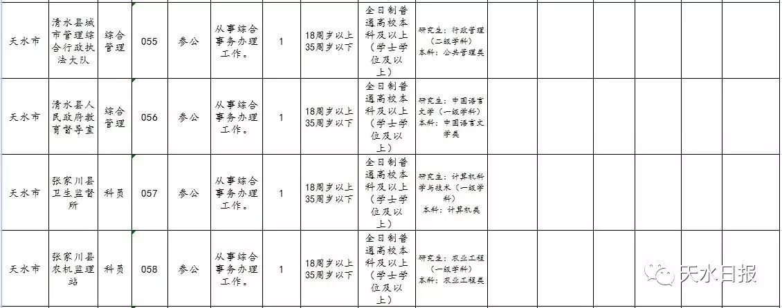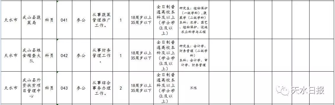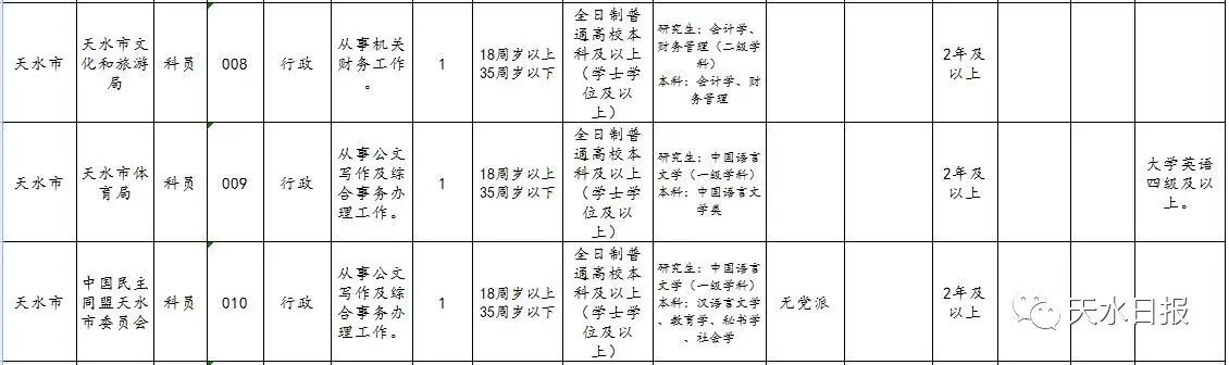 2017年天水市考试录用公务员和参照公务员
