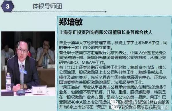 体银商学院是一个深入研究体育商业创新、互联网思维以及金融的学习型社群,也是体育、资本、人才、资源全方位整合与对接的平台,致力于提供体育界人士交流、学习、共同成长的机会,打造“平台+智库+资本”的生态模式。截止目前,体育BANK已经举办了10期体育企业资本运作高端闭门研讨会,汇聚了300余位学员,包括上市公司和新三板公司高层、海外学员、跨界人才、奥运冠军等。