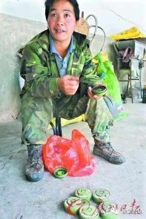 过去20年间,这他村的村民们已经在阵中挖出了两万多枚,并将数百亩山坡中的排出,变为可耕种的山地。